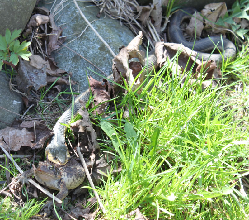 Snake eating a toad